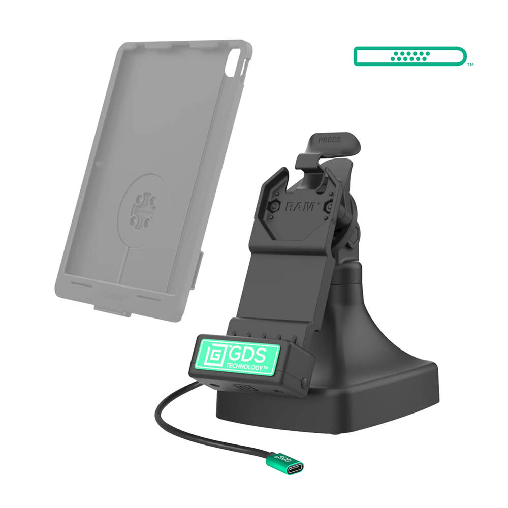 Die RAM Mounts GDS Uni-Conn Stand-Dockingstation ist eine freistehende Dockingstation und für Geräte in einer IntelliSkin Next-Gen, IntelliSkin Hard Case oder IntelliSkin Thin-Case mit montierten GDS Uni-Conn Adapter geeignet.