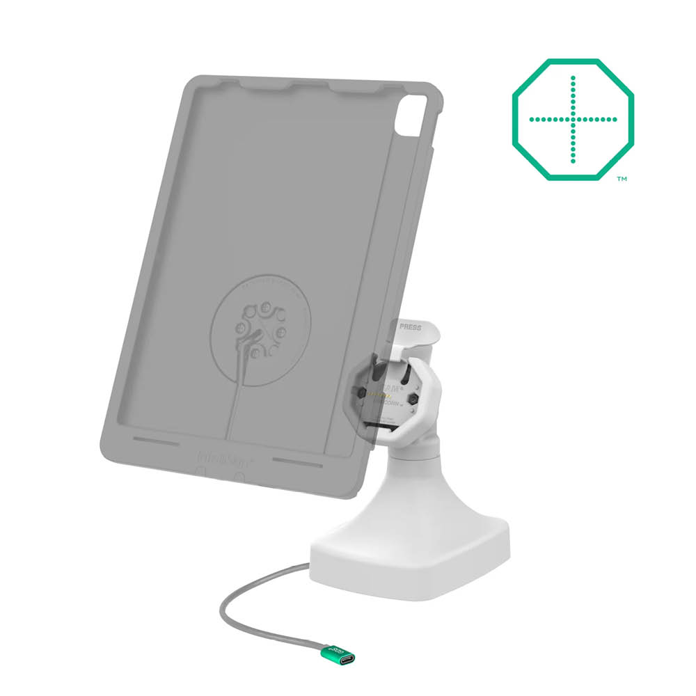 Die Snap-In Halterung hält Ihr Gerät sicher und ermöglicht gleichzeitig schnelles Laden über die integrierten Pogo-Pins, die Stromversorgung erfolgt über einen USB-C Anschluss.
