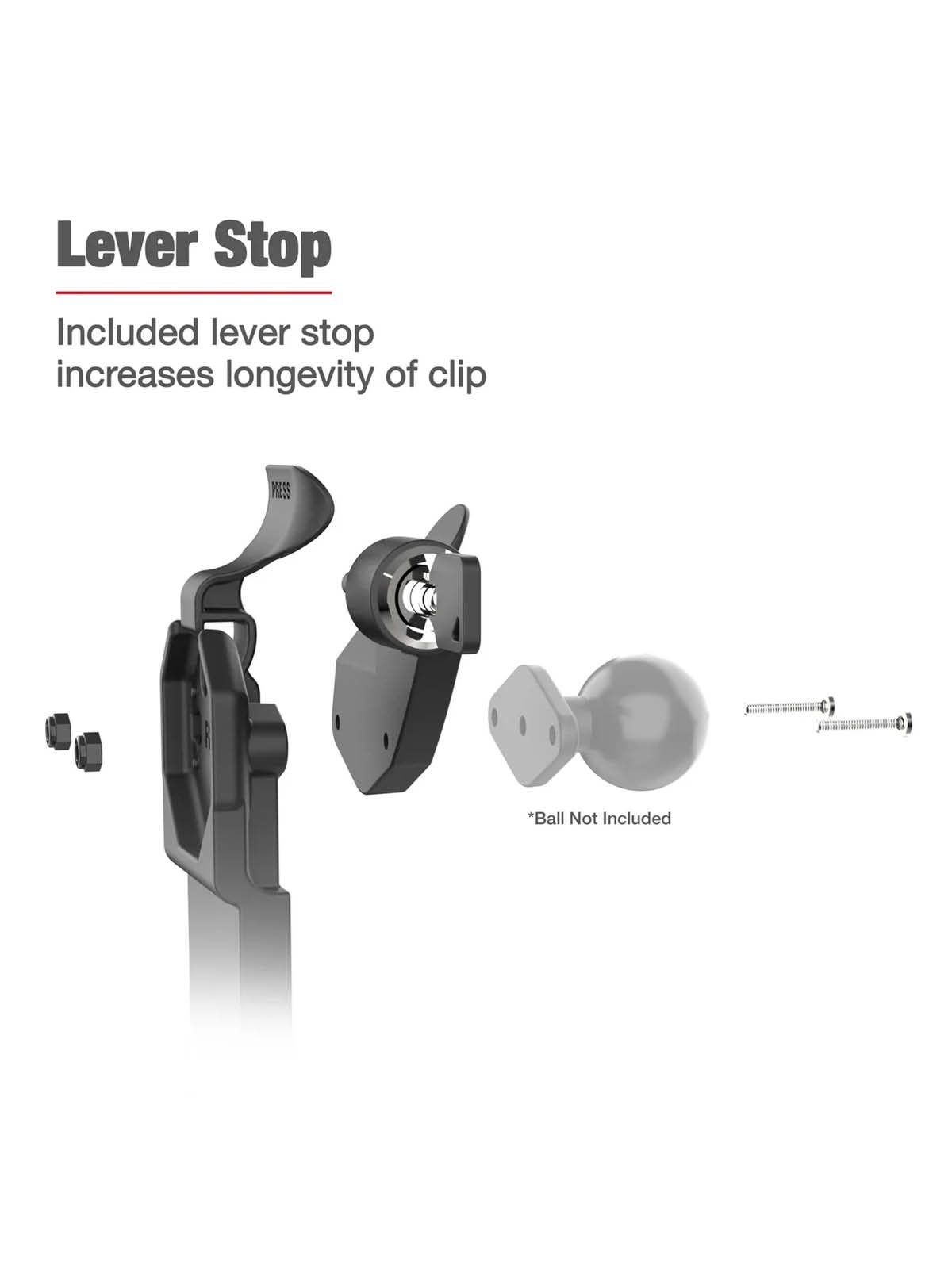 Die Garantie der Halterung erlischt, wenn sie ohne Hebelanschlag (Lever Stop) verwendet wird.