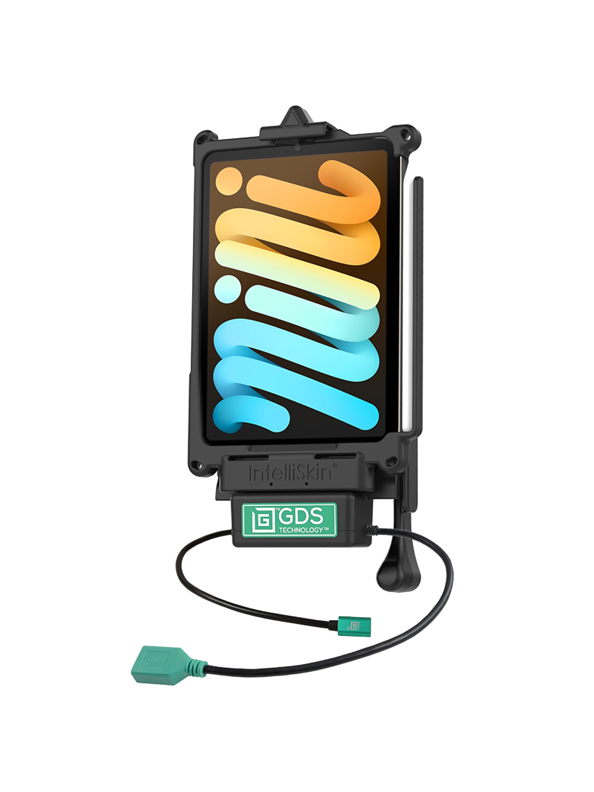 RAM Mounts GDS Halteschale (Schlüsselverriegelung) für Apple iPad mini (A17 Pro) & mini 6 - In IntelliSkin Next Gen Schutzhülle - USB-C & USB-A-Anschluss
