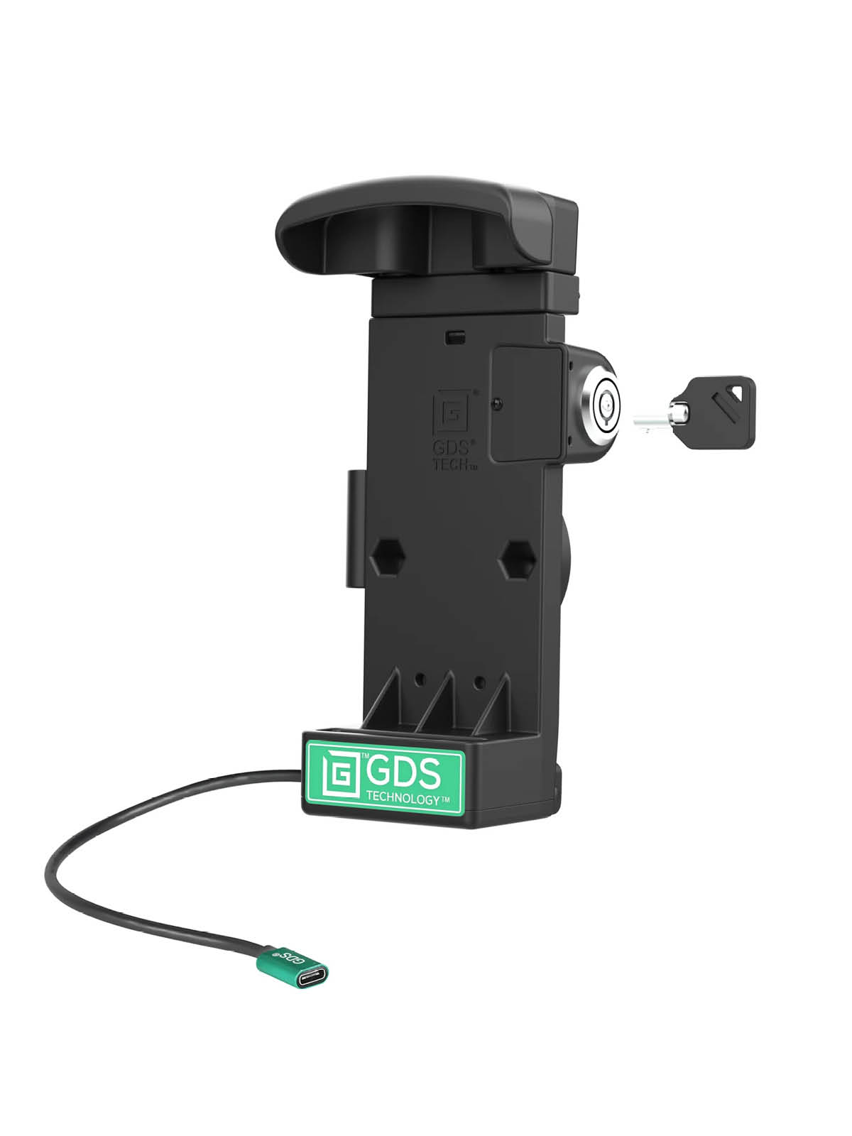 Die Halteschale wird durch einen USB-C Anschluss mit Strom versorgt und lädt das Gerät in dem Dock auf.