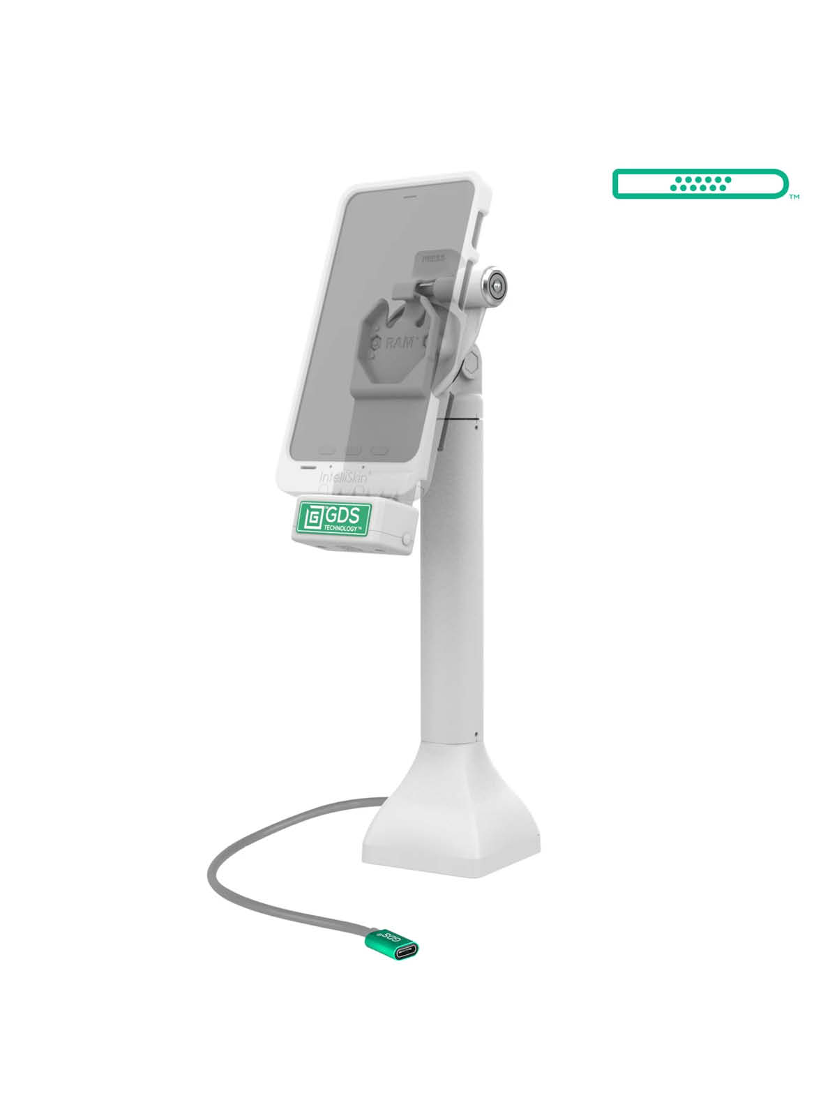 Die RAM Mounts GDS Uni-Conn Stand-Dockingstation (14 Zoll) mit Schlüsselverriegelung (Rechts) ist eine freistehende Dockingstation und für Geräte in einer IntelliSkin Next-Gen, IntelliSkin Hard Case oder IntelliSkin Thin-Case mit montierten GDS Uni-Conn Adapter geeignet.