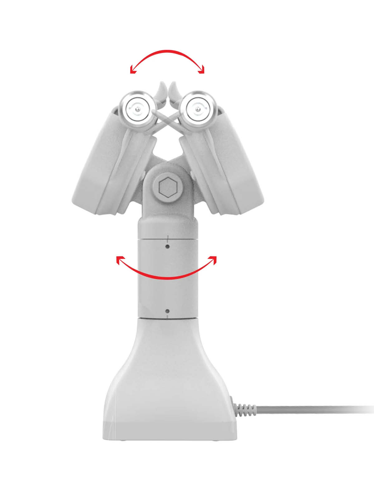 Diese Dockingstation ermöglicht eine 180-Grad-Drehung und erlaubt es den angeschlossenen Geräten, sich um 180 Grad zu neigen, was sie ideal für kundenorientierte Branchen wie Einzelhandel, Gastgewerbe und Gastronomie macht.
