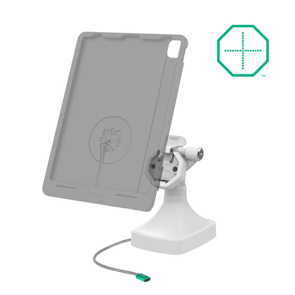 Die Snap-In Halterung hält Ihr Gerät sicher und ermöglicht gleichzeitig schnelles Laden über die integrierten Pogo-Pins, die Stromversorgung erfolgt über einen USB-C Anschluss.