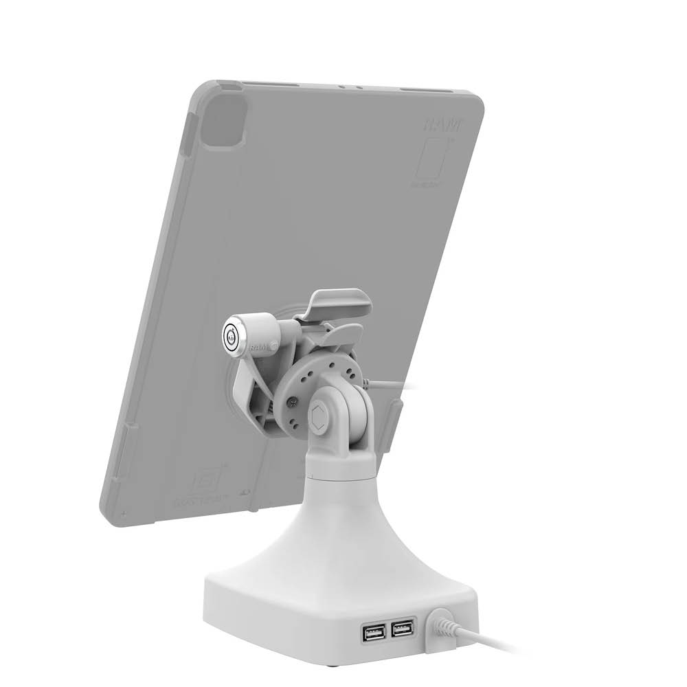 Die RAM Mounts GDS Uni-Conn Stand-Dockingstation mit Schlüsselverriegelung (Rechts) ist eine freistehende Dockingstation und für Geräte in einer IntelliSkin Thin-Case mit rückseitigen Pogo-Pads geeignet.
