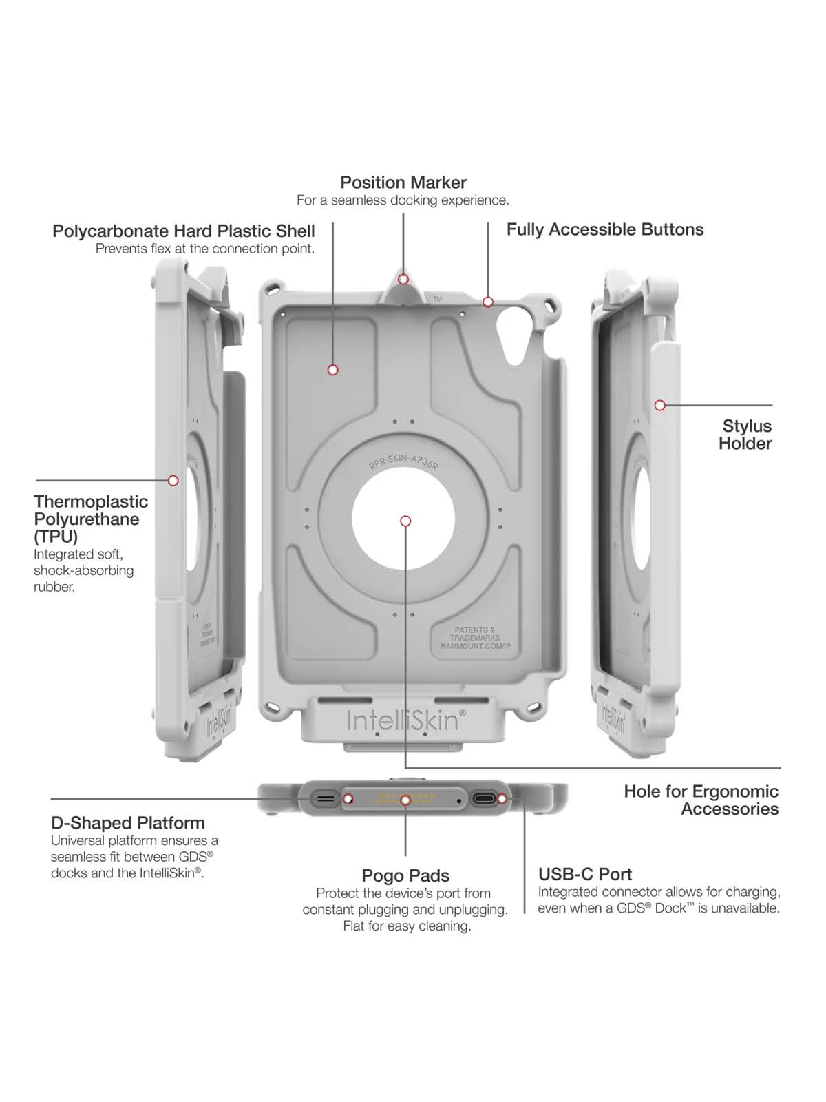 Die IntelliSkin Schutzhülle ist kompatibel mit zahlreichen GDS-Halterungen und weiteren GDS-Dockingstationen, was sie ideal für den professionellen Einsatz macht – sei es im Fahrzeug, am Arbeitsplatz oder im mobilen Einsatz.