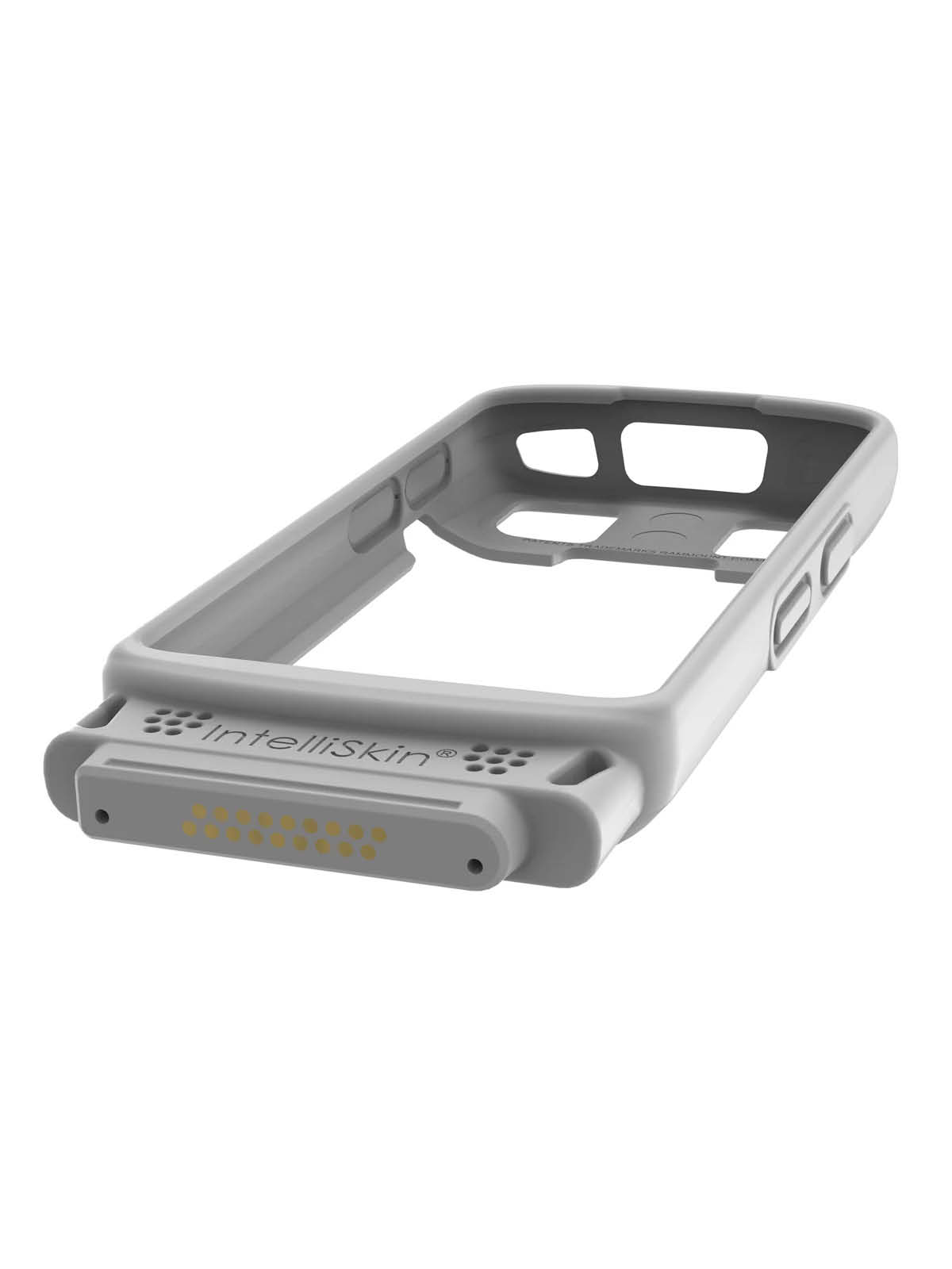 Weitere Aussparungen und Freiräume auf der Rückseite der IntelliSkin sorgen für Kompatibilität mit Standard- und erweiterten Akkupacks sowie der OEM-Handschlaufe.