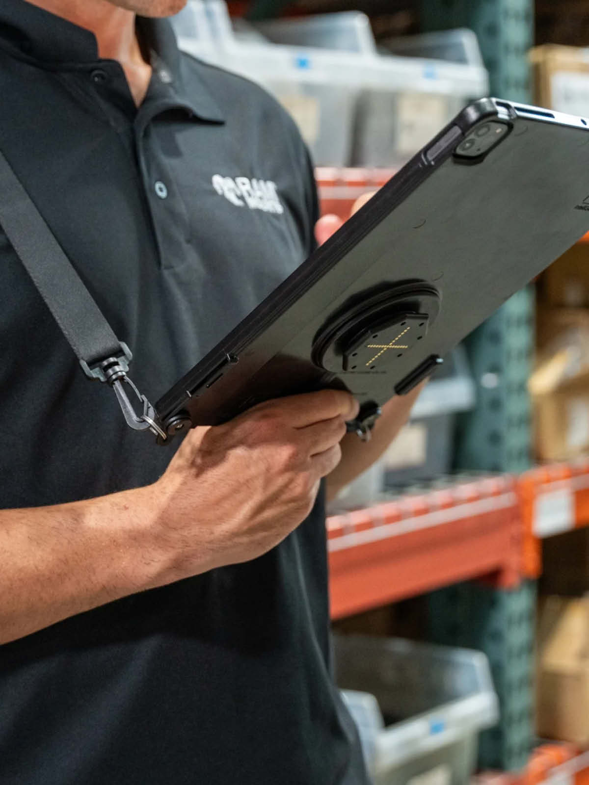 The GDS® Shoulder Strap Accessory for IntelliSkin® Thin-Case™ (RAM-GDS-SS1-TCU) utilizes screw-in swivel attachments to install directly into the bottom corners of an IntelliSkin® Thin-Case™ in order to provide an ergonomic on-the-go carrying solution for your tablet.