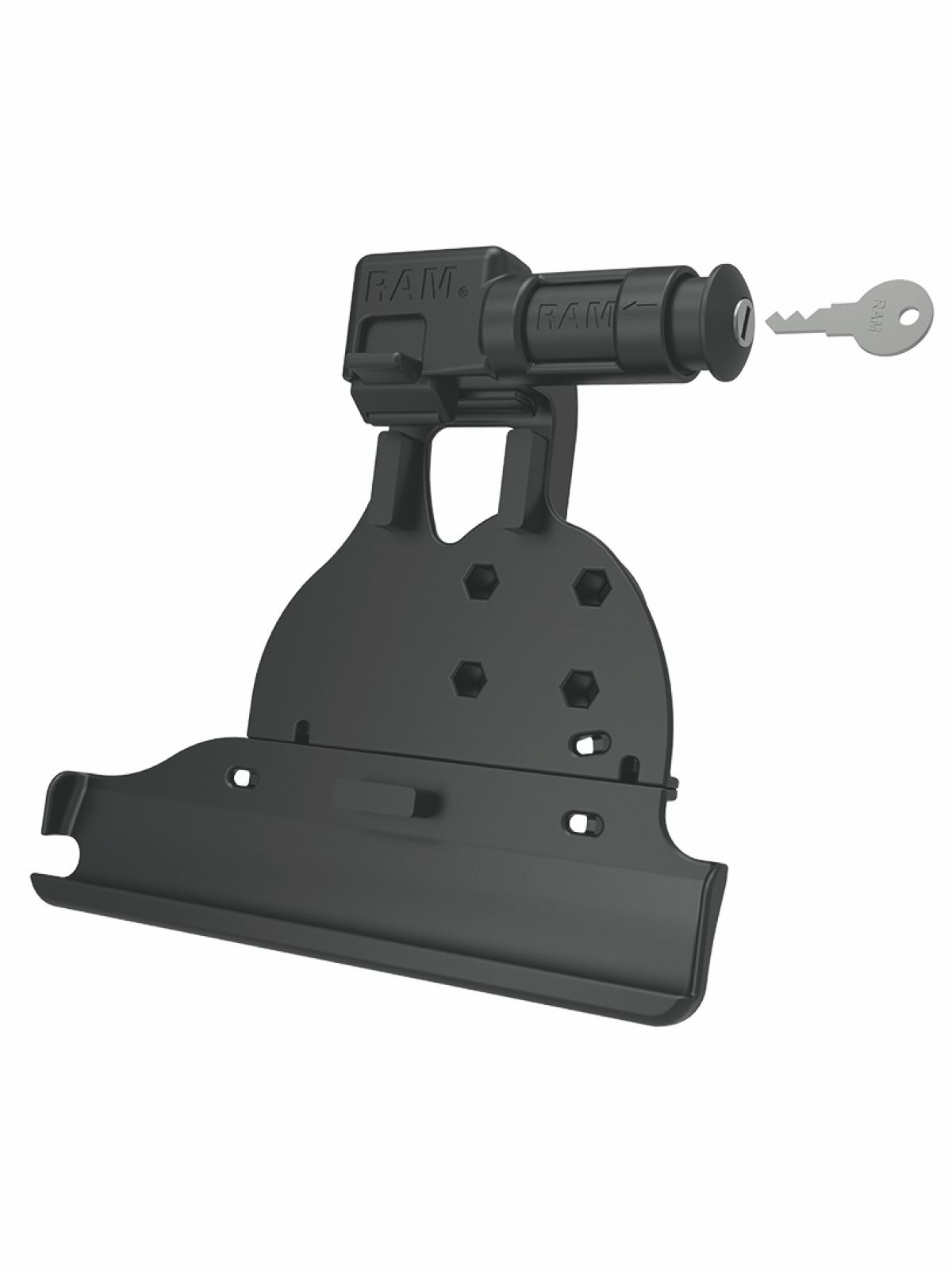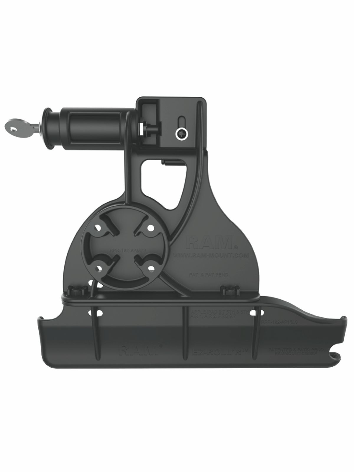 Diese RAM Mounts EZ-Roll’r Form-Fit (Schlüsselverriegelung) Halteschale ist für das Apple iPad 5. & 6. Generation, Air 1-2, Pro 9.7 ohne Schutzhülle geeignet.