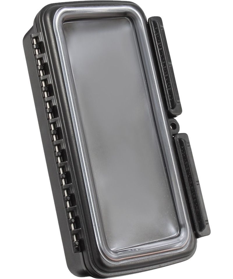 Die RAM MOUNT Aqua Box Gehäuse bieten besten Schutz vor Wasser und Schmutz für eine Reihe von elektronischen Handgeräten. Die Frontseite ist mit einer durchsichtigen dicken Folie versehen. In der Mitte befindet eine Vorrichtung zur Anbringung eines kleinen Schlosses (nicht im Lieferumfang enthalten). Die Rückseite ist vorbereitet zur Aufnahme einer ovalen Basisplatte (Trapez).