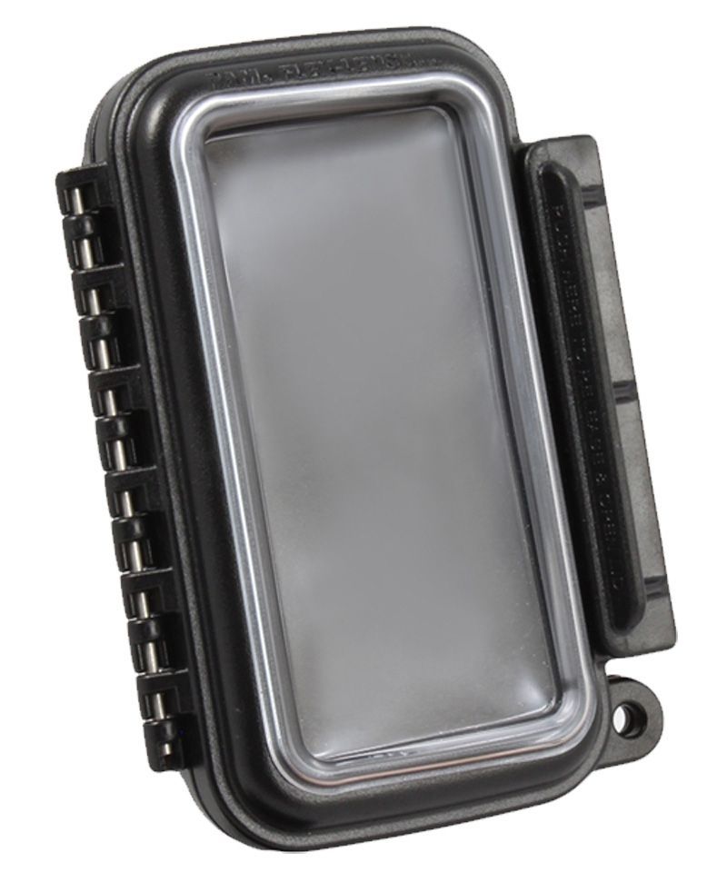 Die RAM MOUNT Aqua Box Gehäuse bieten besten Schutz vor Wasser und Schmutz für eine Reihe von elektronischen Handgeräten. Die Frontseite ist mit einer durchsichtigen dicken Folie versehen. An der unteren rechten Ecke befindet eine Vorrichtung zur Anbringung eines kleinen Schlosses (nicht im Lieferumfang enthalten). Die Rückseite ist vorbereitet zur Aufnahme einer ovalen Basisplatte (Trapez).