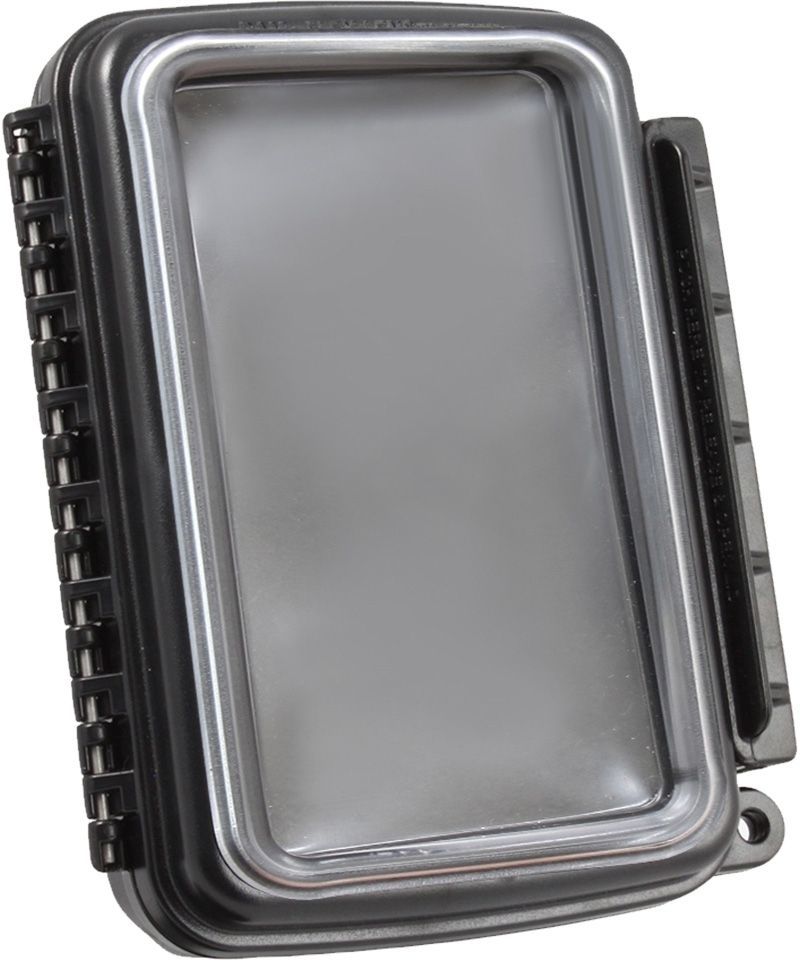 Die RAM MOUNT Aqua Box Gehäuse bieten besten Schutz vor Wasser und Schmutz für eine Reihe von elektronischen Handgeräten. Die Frontseite ist mit einer durchsichtigen dicken Folie versehen. An einer Ecke befindet eine Vorrichtung zur Anbringung eines kleinen Schlosses (nicht im Lieferumfang enthalten). Die Rückseite ist vorbereitet zur Aufnahme einer runden Basisplatte.