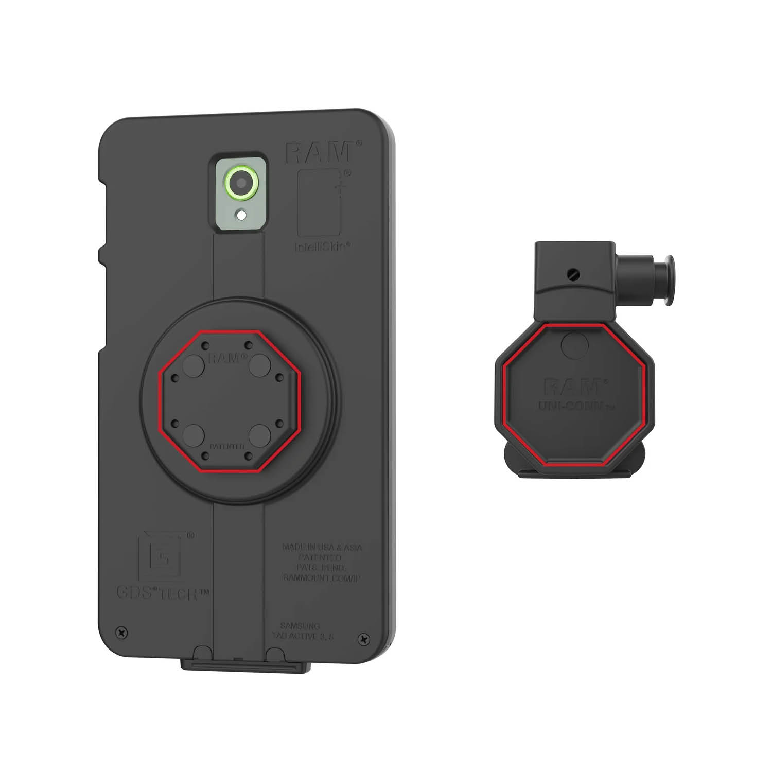 The RAM® Belt Clip Holder with Release Button for GDS® Uni-Conn™ Button (RAM-HOL-BC-U1U) enables workers to go hands-free and position their device for quick access on their belt. The universal Uni-Conn™ design securely snaps in smartphones, tablets, and handheld computers wrapped in IntelliSkin® with a Uni-Conn adapter - powered or non-powered. When it’s time to move, a simple lever press allows for quick, one-handed device removal.