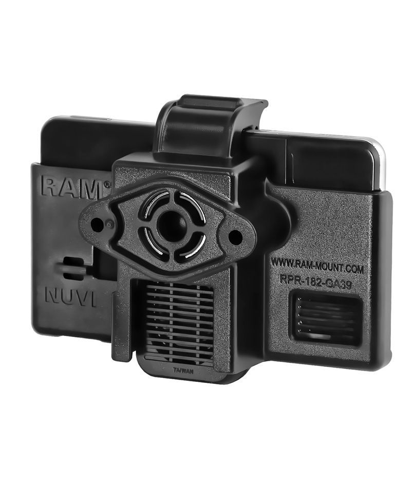 RAM MOUNT Gerätehalteschale - RAM-HOL-GA39U - mit Geräte schonendem Rollbügelsystem passend für die folgenden Geräte: Garmin nüvi 3450 / 3450LM / 3490LMT / 3750 / 3760LMT / 3760T / 3790LMT / 3790LT. Eine Ausschachtung für die original Garmin Klammer ist vorhanden. Die Rückseite ist für die Aufnahme einer ovalen Basisplatte (Trapez) vorbereitet.