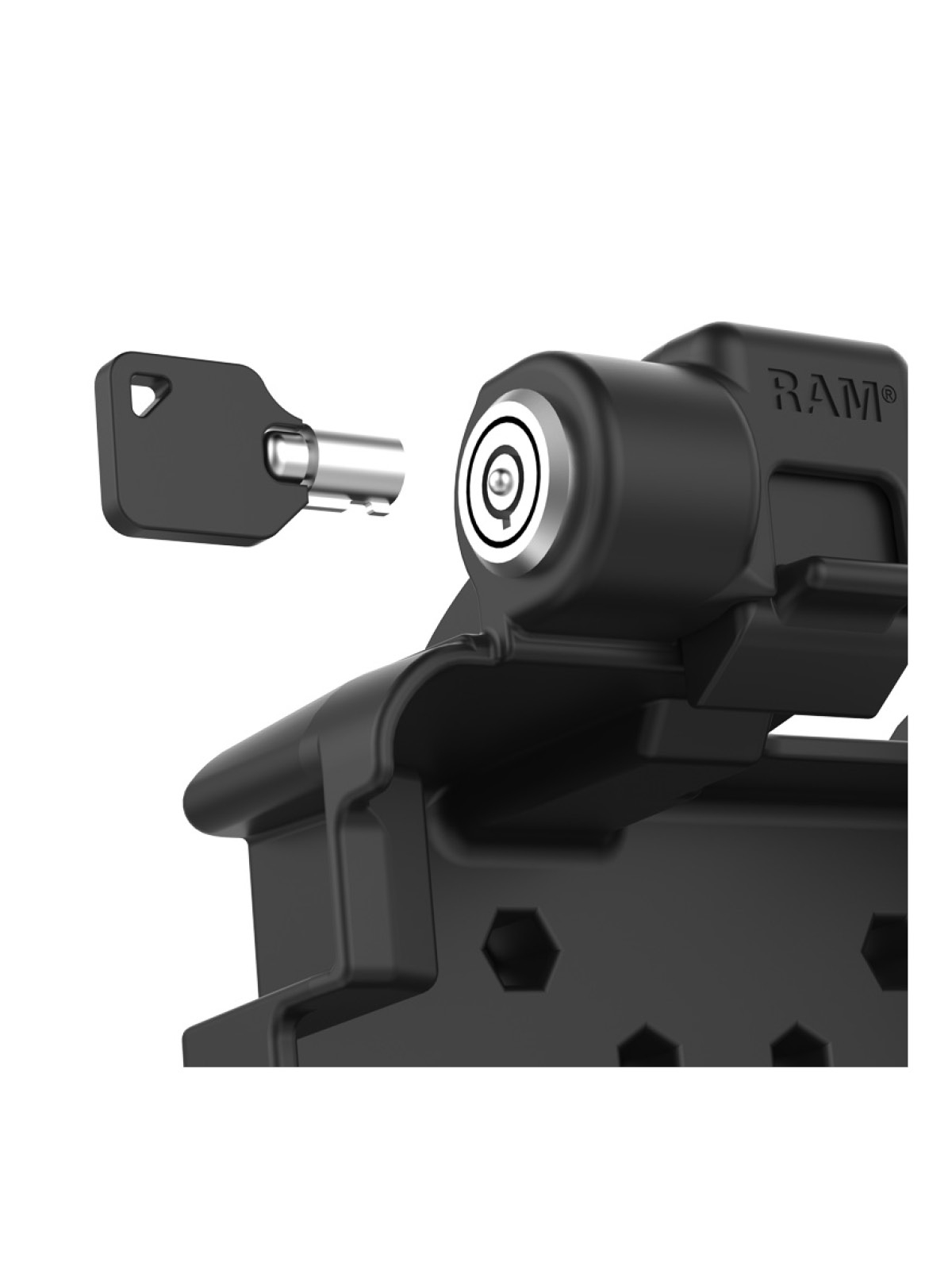 Featuring charging capabilities and a key lock for theft deterrence, the RAM Vehicle Dock for the Panasonic FZ-S1 & FZ-L1 allows you to keep the device charged through the pogo pin contacts when the device is dockedpower is provided by connecting to the dock's 5.5mm DC power jack. The dock also allows the tablet's scanning function to work through the cutout on the back which also accommodates tablet add-ons such as scanner, hand strap and extended battery. This vehicle dock is compatible with C and D size RAM 4-hole AMPS and 75mm x 75mm VESA pattern bases for attaching a double socket arm in order to complete your mounting solution.