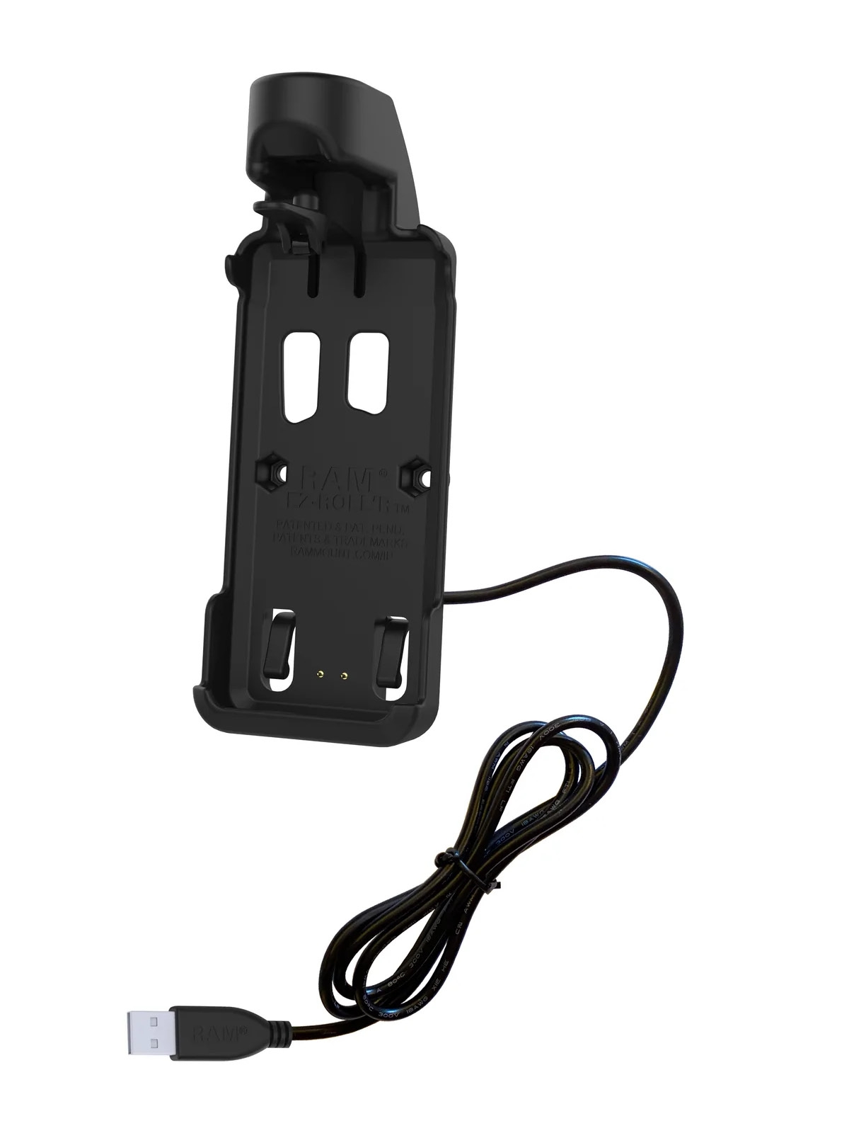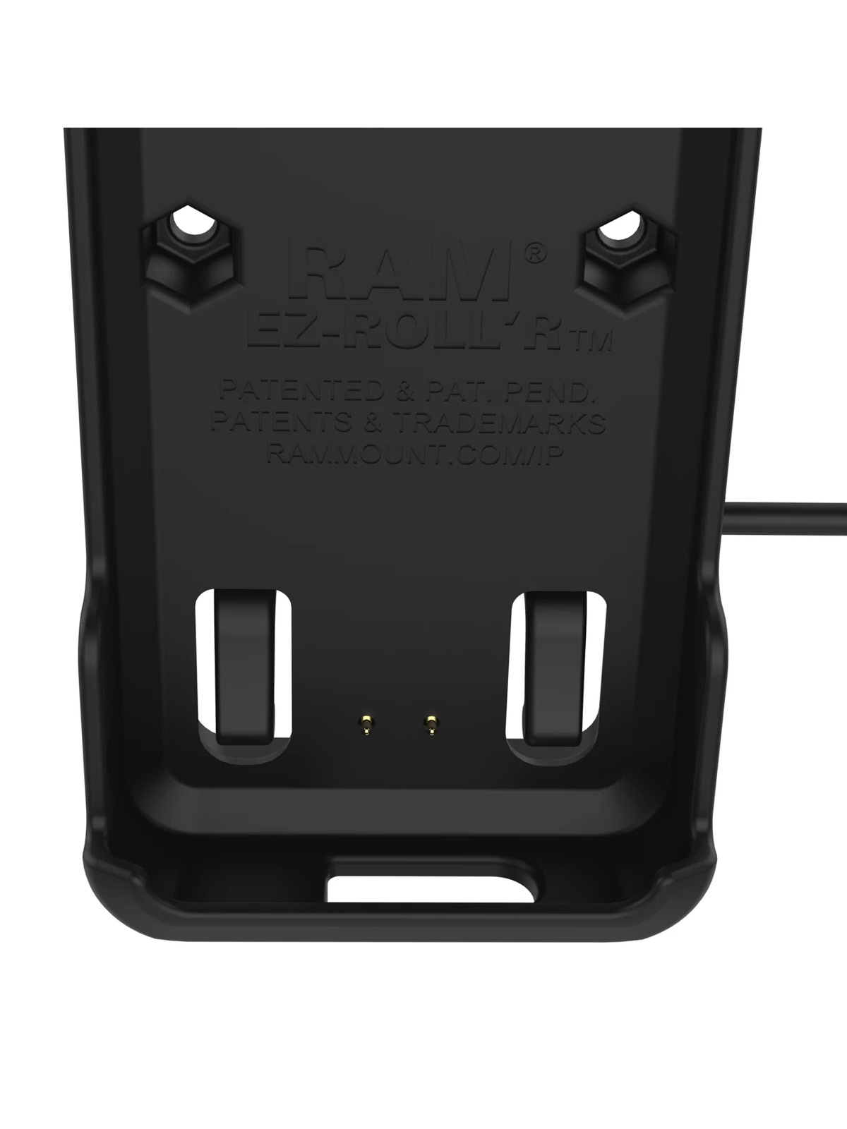 Features Powered RAM® EZ-Roll'r™ style form-fit dock for the Sonim XP5plus provides a perfect fit for your device while keeping the device charged; supports both versions with and without PTT control knobs Single-handed docking and removal of device Compatible with B and C size RAM® diamond bases for attaching a double socket arm; ball and socket technology allows for near-infinite adjustability Overview The RAM® EZ-Roll'r™ Powered Cradle for Sonim XP5plus secures your device in a form-fit holder while keeping the entire screen and buttons visible and accessible. This powered dock features two integrated pogo pins that provide charging capabilities to the device through a male USB Type A connector. Single-handed operation makes it easy to dock and remove the Sonim XP5plus-simply lift the top lever and pull out the device, or place the bottom portion of the device in first and push in to dock in place. Compatible with RAM® two-hole AMPS pattern bases and RAM® microphone brackets, this RAM® form-fit dock easily connects to B and C size ball mounts for use in a wide variety of applications. This dock will support both variations of the Sonim XP5plus; with and without PTT control knobs. Hole pattern: 2-Hole AMPS 1.912" Input cable length: 1.25 m Compliance: Made from ABS-V0 that conforms to UL 94-V0 flammability tests.