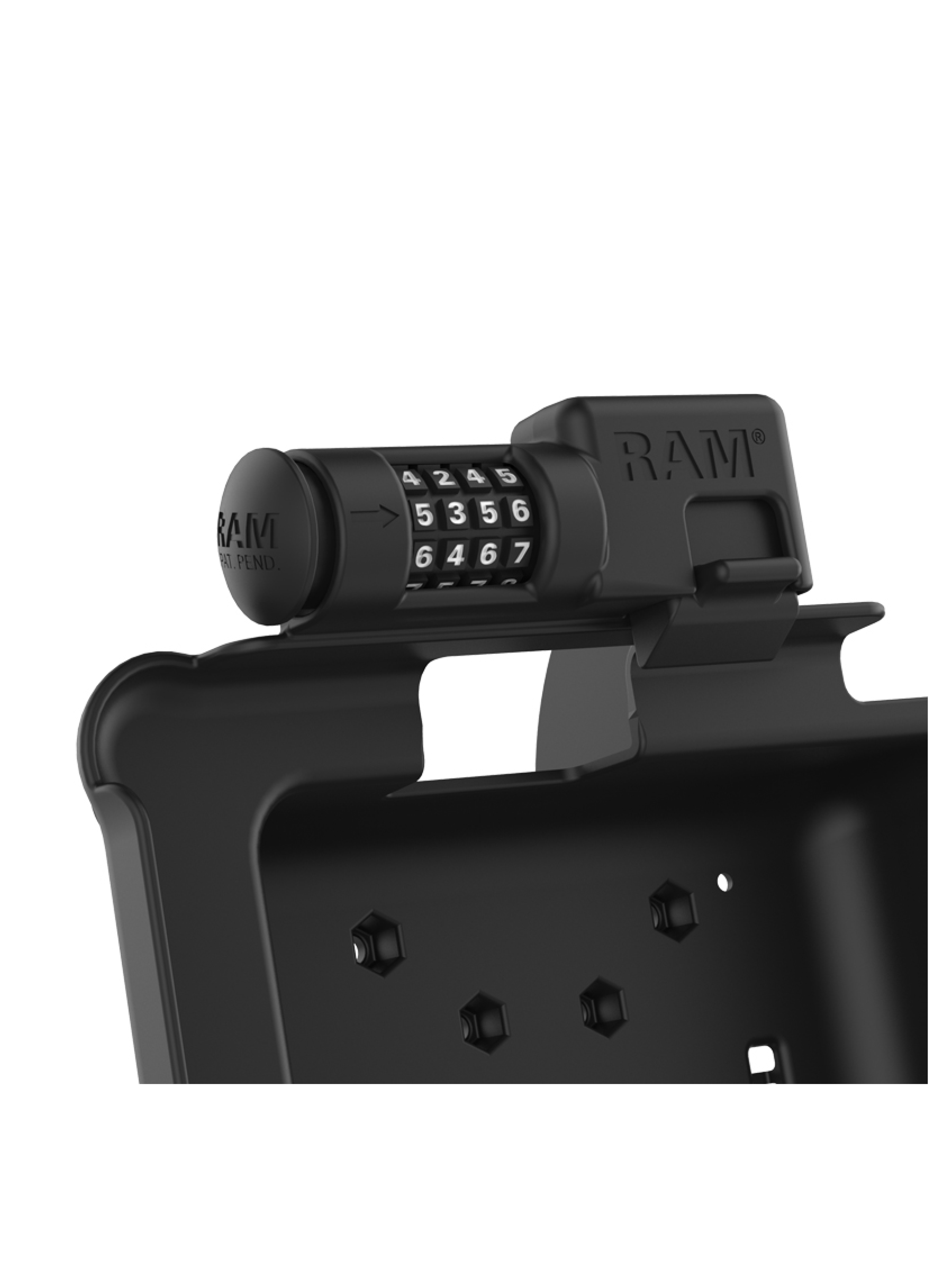 Diese RAM Mounts Form-Fit (Zahlenschloss) Halteschale ist für Zebra ET5x 8.3“ & 8.4“ Serie mit Rugged Boot geeignet.