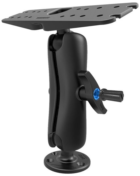 RAM Mounts Aufbau-Set mit Pin-Lock Sicherung - runde Basisplatte, mittlerer Verbindungsarm mit Pin-Lock Inlet, Pin-Lock Adapter, Adapterplatte (mit Universal-Lochraster), D-Kugel (2,25 Zoll)