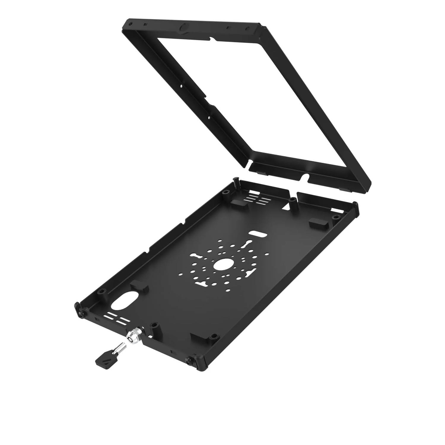 The RAM® Safe-Case™ for Samsung Galaxy Tab S9 & S9 FE (RAM-TE-SAM86) is a rugged, modular enclosure designed for high-security environments. Built from durable two-piece steel, this key-locking tablet case protects against theft, tampering, and tough environmental conditions - ideal for demanding field or industrial applications. Custom-fit for the Samsung Galaxy Tab S9 & S9 FE, the Safe-Case™ features precision cutouts for full access to the device’s lock button, USB-C port, and rear camera.
