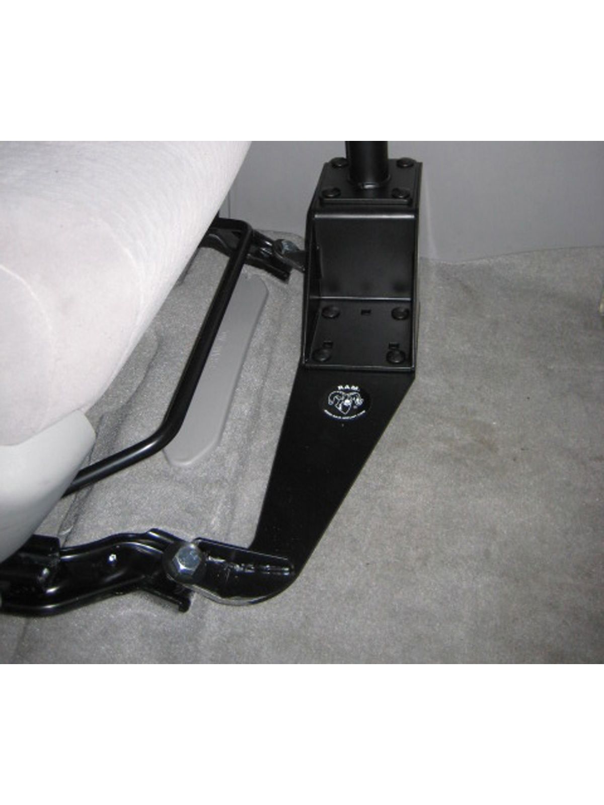 The RAM Mounts No-Drill™ laptop mounting base features a heavy-duty steel mounting base custom designed to fit this vehicle perfectly. Using the passenger side seat rail bolts as attachment points, existing hardware is used to secure the laptop mount base in the vehicle. Hole pattern - Seat Bolt Distance 15.875" center to center Material(s) - Powder coated steel, Marine-grade aluminum Additional Information - the RAM-VB-138 will not fit bench seat trucks.