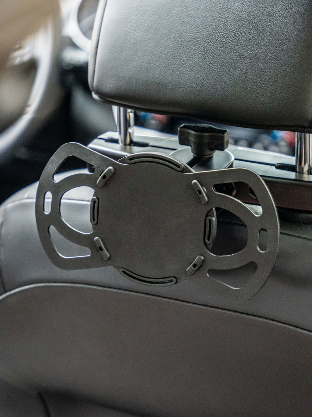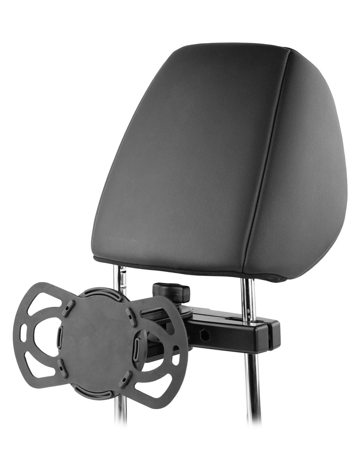 The RAM® Universal Headrest Tablet Mount for 7"-13" Tablets (RAP-469-TU) secures to the headrest of most cars, providing a clean, universal mounting solution for tablets to elevate the backseat experience of your passengers. This solution features a durable rubber tether that stretches around each corner of the tablet, providing a secure, universal fit for tablets ranging from 7" to 13". Made of high-strength composite.