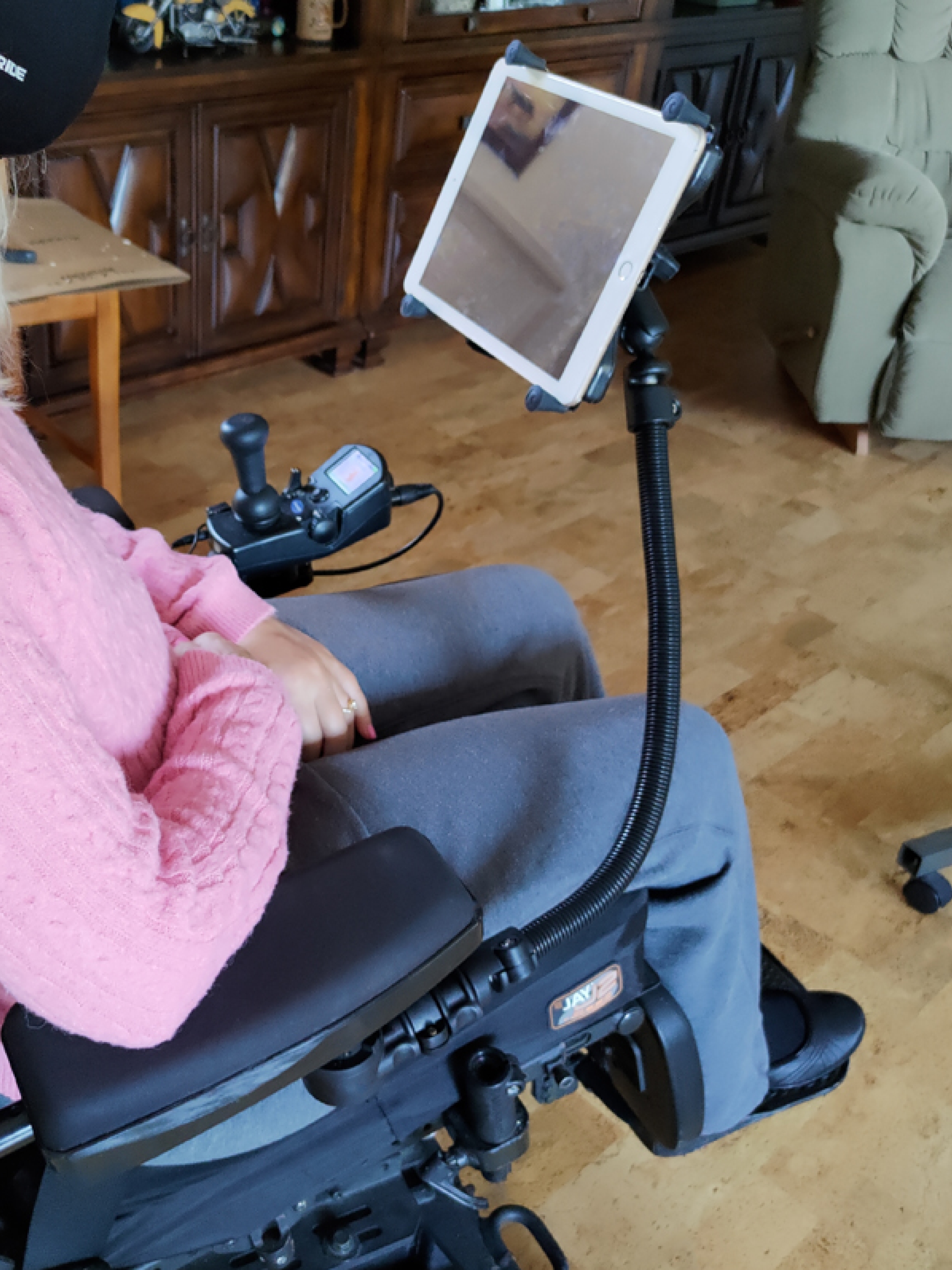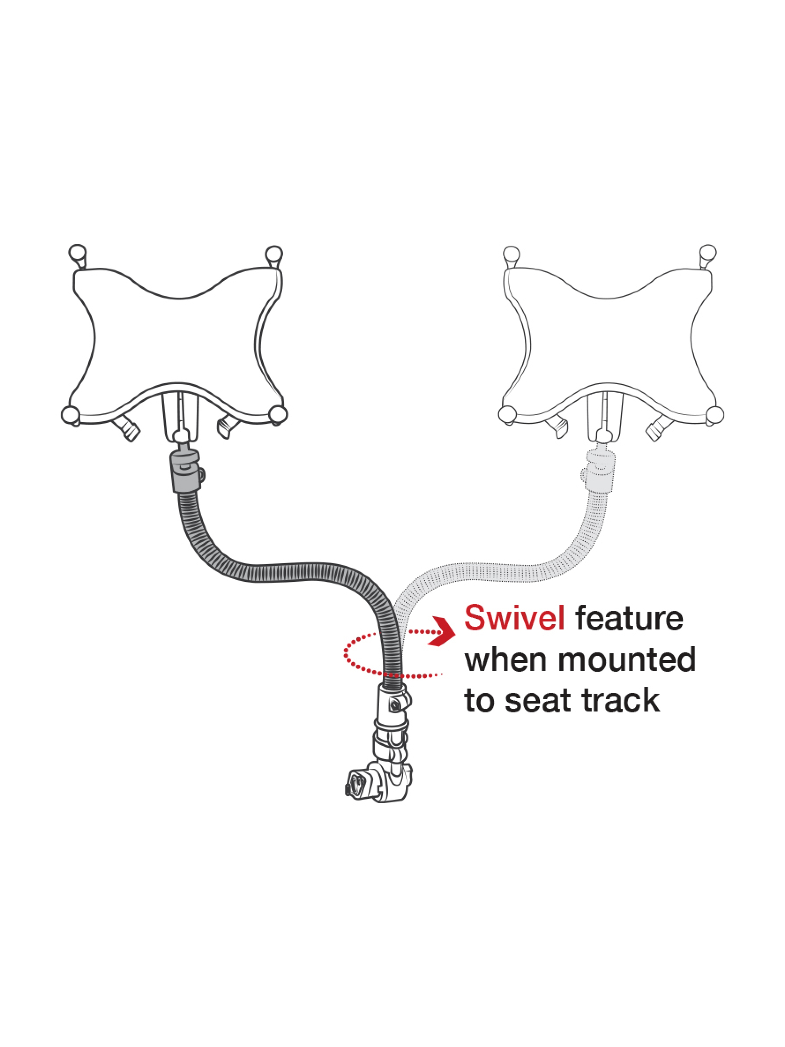 The RAM Tablet Mount with Quick Release & Swivel is the perfect solution for mounting virtually any 9"-10.5" tablet to any wheelchair armrest track, Invacare armrest, or wheelchair seat track. The system consists of the RAM X-Grip tablet holder, B size double socket arm, an 18" long rigid Aluminium rod with post adapter, and the RAM Universal Wheelchair Base. The universal base offers a quick disconnect feature of the entire mount without having to adjust any ball and socket components. The base also features an adjustable knob that lets you swivel the mount in and out of position with ease. When mounted to a seat track, the Aluminium rod can be left loose to achieve the same swivel feature. The compact design of the RAM Universal Wheelchair mounting system stays within the chair's armrest width, offering peace of mind when navigating through tight spaces and doorways.
